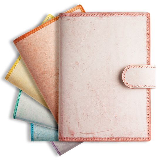 にある Mario Stefanelli & Figli 社製の ワックスレザー Ghost は幻想的な美しさを纏う⽪⾰です。鮮やかな⾰の表⾯に、雪白のワックスが織りなす冬の物語。専⽤のスプレーマシンが描き出す、初雪の朝のような光景。その⾜跡は、儚くも美しい思い出のようです。冬に雪遊びをしたことを経験がありますか?雪を踏みしめると⾜跡が残り、雪が溶けると、それは儚くも消えてしまいます...