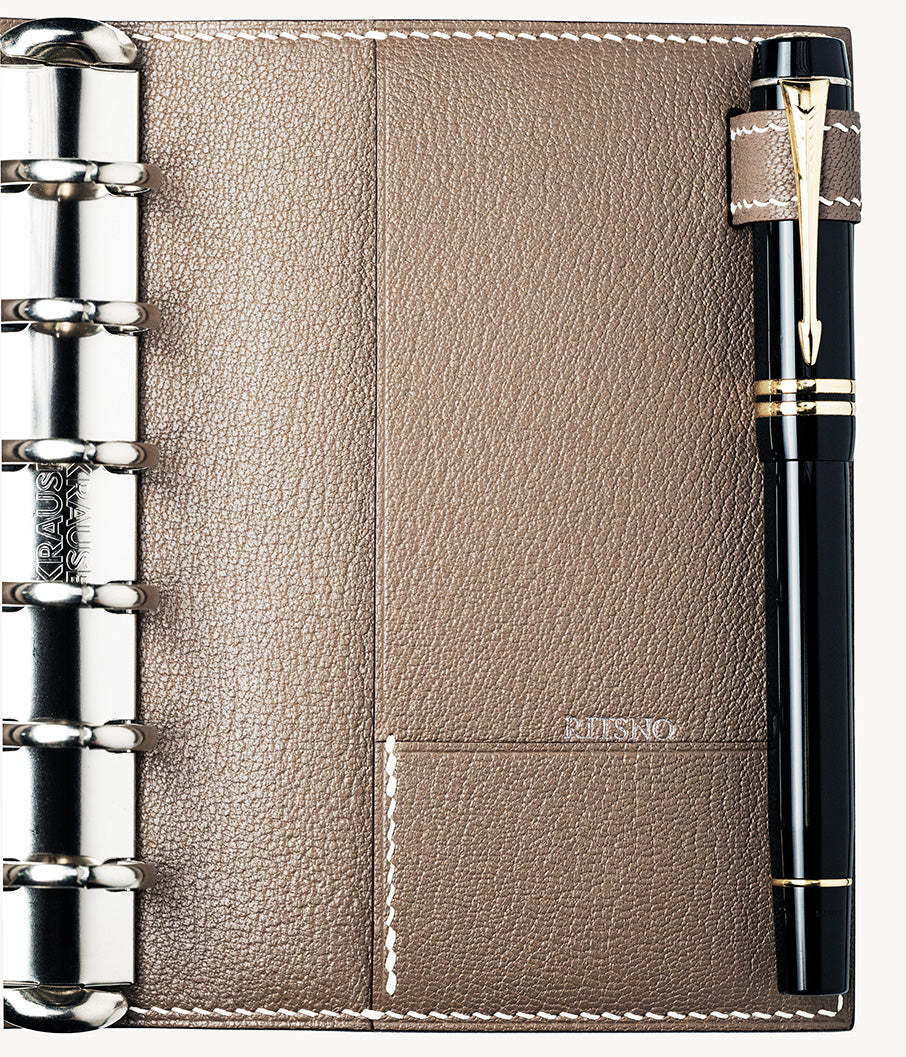 RITSNO は初めてバックの製造技術を手帳に取り入れ、硬く型崩れしにくい一方で、柔軟性と弾力性を兼ね備えた多層構造の手帳を作りました。